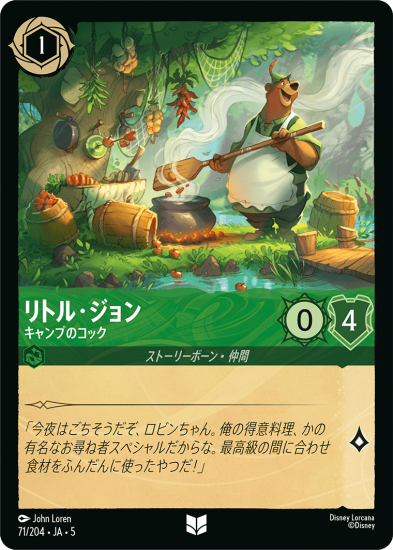 ディズニーロルカナ「星々の輝き」収録のカード、リトル・ジョン キャンプのコックです。
