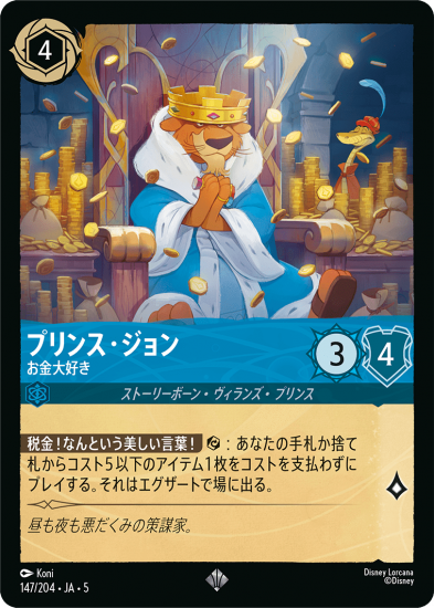 ディズニーロルカナ「星々の輝き」収録のカード、プリンス・ジョン お金大好きです。