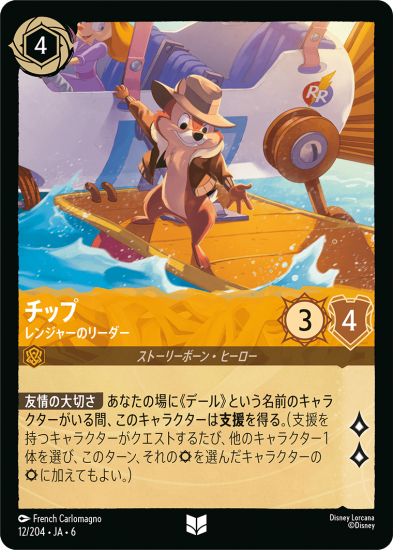 ディズニーロルカナ「AZURITE SEA 大いなるアズライト」収録のカード、【フォイル】チップ レンジャーのリーダー