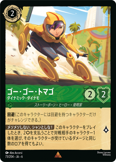 ディズニーロルカナ「AZURITE SEA 大いなるアズライト」収録のカード、【フォイル】ゴー・ゴー・トモゴ ダイナミックなダイナモ
