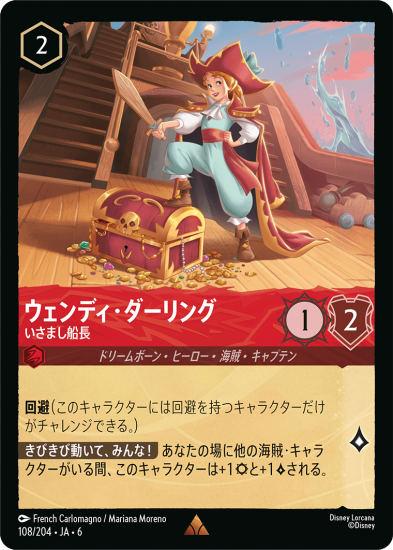 ディズニーロルカナ「AZURITE SEA 大いなるアズライト」収録のカード、【フォイル】ウェンディ・ダーリング いさまし船長