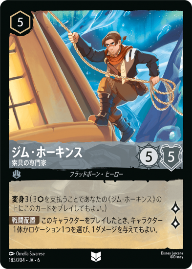 ディズニーロルカナ「AZURITE SEA 大いなるアズライト」収録のカード、【フォイル】ジム・ホーキンス 索具の専門家