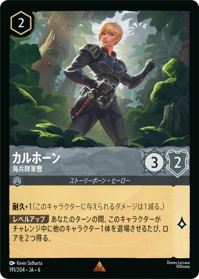 ディズニーロルカナ「AZURITE SEA 大いなるアズライト」収録のカード、【フォイル】カルホーン 海兵隊軍曹